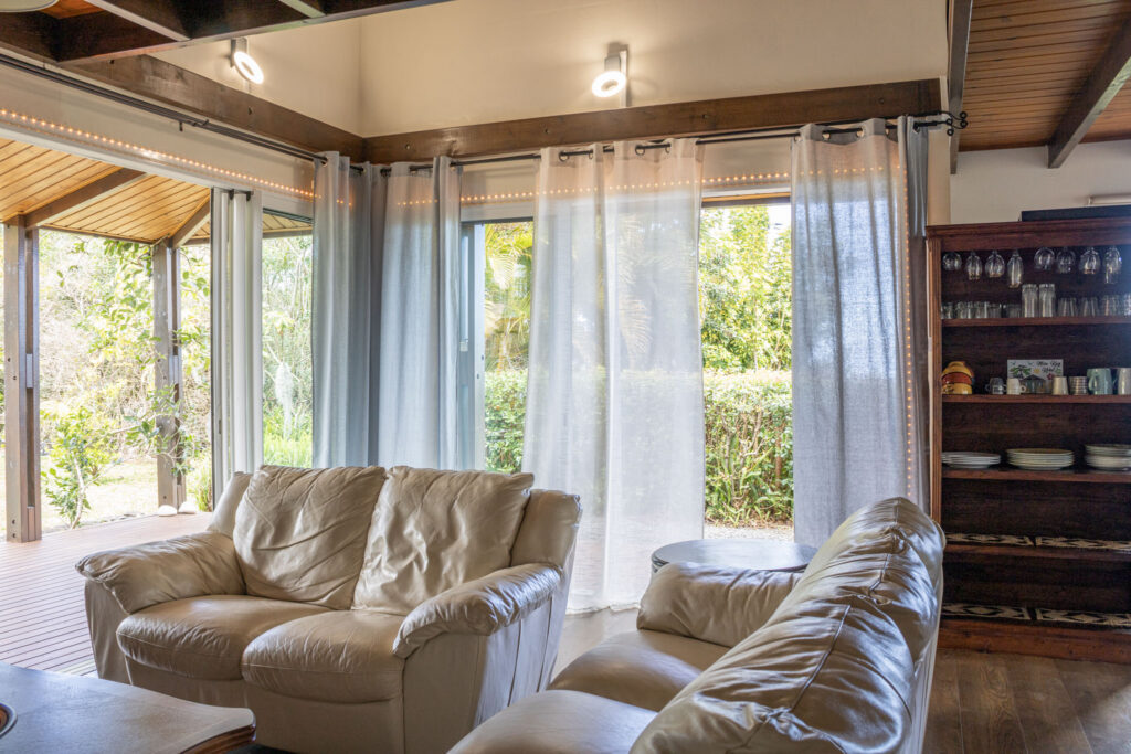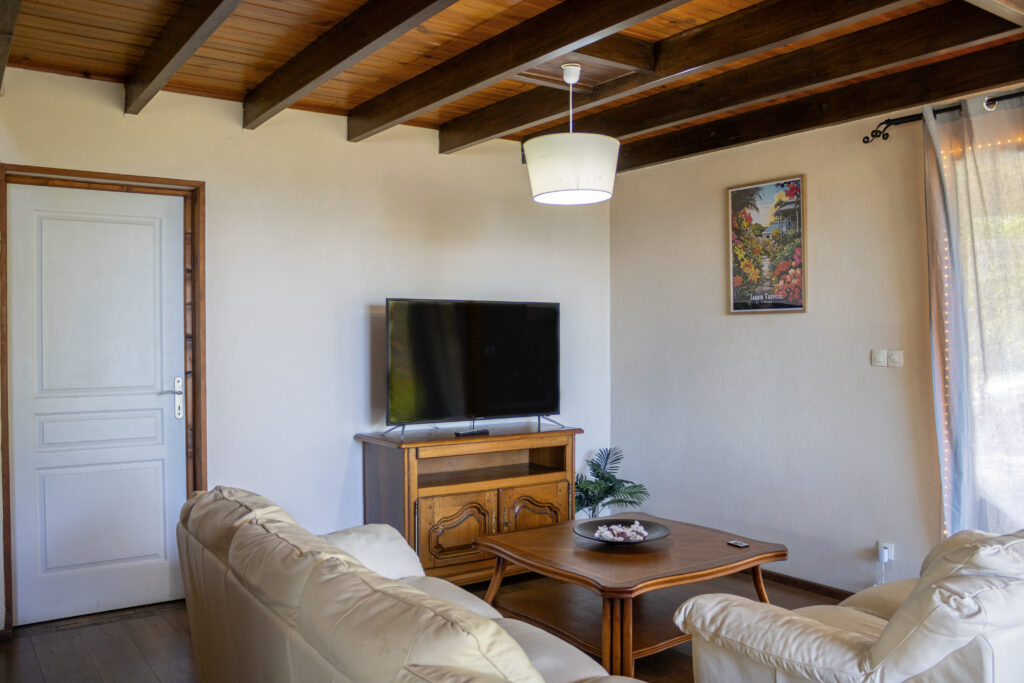 La maison comprend un salon accueillant avec TV, une cuisine intĂ©rieure Ă©quipĂ©e, une cuisine extĂ©rieure crĂ©ole avec barbecue, une salle de bain fonctionnelle avec toilettes. Elle comporte Ă©galement Ă l’Ă©tage un petit coin dĂ©tente dans lequel sont mis Ă disposition des livres touristiques, de randonnĂ©es ou encore de recettes crĂ©oles.